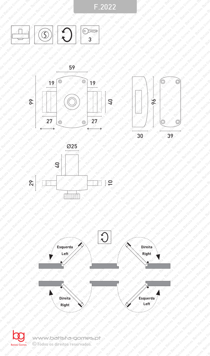 • Fechadura de sobrepôr com cilindro e botão. Língua deslizante • Funciona com chave no exterior e botão no interior • Cilindro fixo com 3 chaves em latão • Caixa em aço lacado preto ou cromado brilhante • Cilindro em latão cromado brilhante