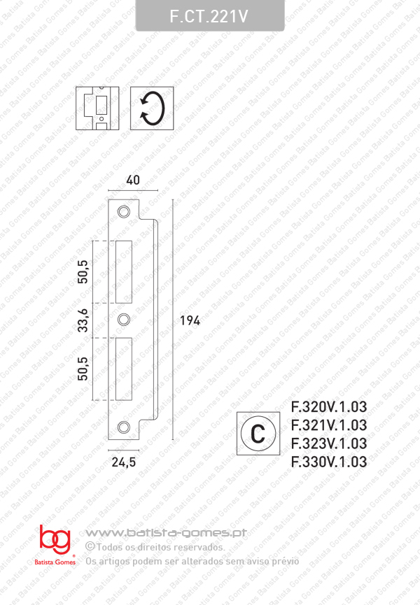 Fechadura para porta de vidro - para puxadores Rotativo / Rotativo