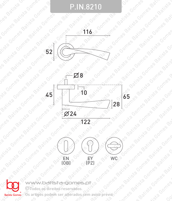 • Inclui entradas de chave normal (EN) ou para cilindro (EY)