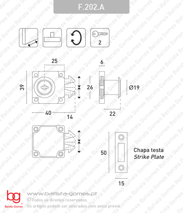 F.202.A Fechadura de sobrepôr com línguas de garras oscilantes e cilindro Para portas de correr de armários