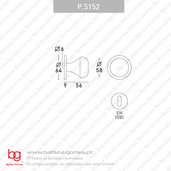 P.5152 • Par Puxador • Opção entradas chave normal • Puxador separado da roseta • Fixação por parafusos nas rosetas + perno roscado a fixar no cavilhão Para mais informações consultar desenho técnico.