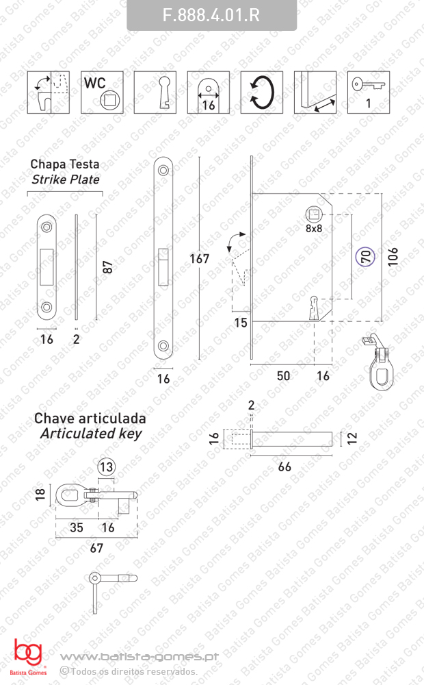 Kit Fechadura com conchas rectangulares com Botão + Botão e chave |
