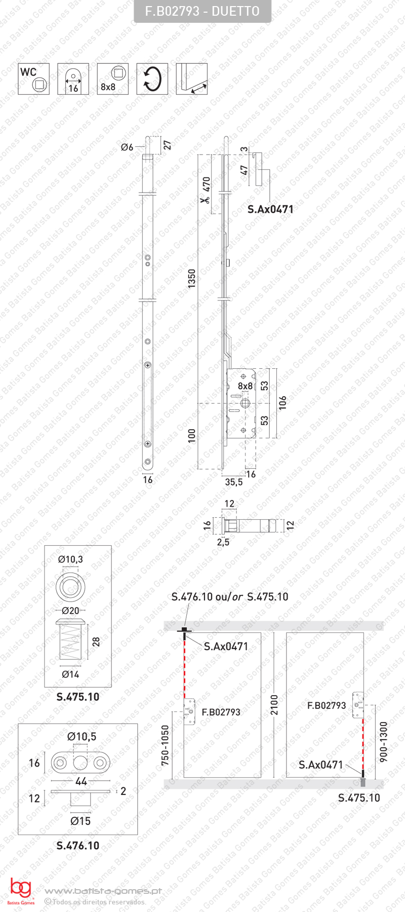 - S.475.10 ( latão polido - latão niquel mate ) Suporte remate anti-poeira embutir para fecho vertical - S.476.10 - Suporte guia
