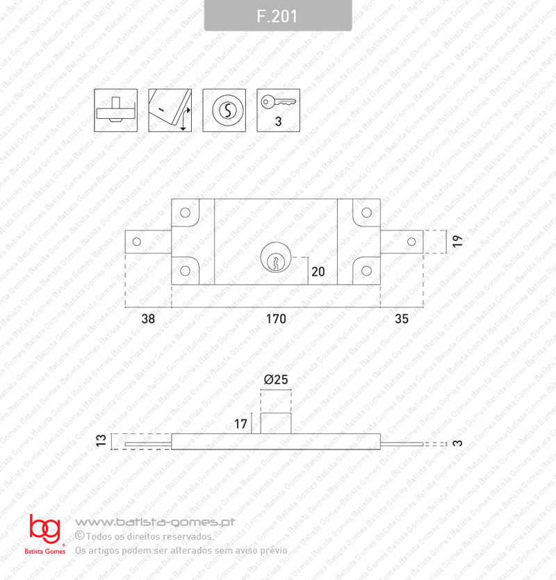 Chave interior / exteriorCom cilindro duplo 4 pinosAbre / fecha com chave do cilindroCaixa em Aço zincado