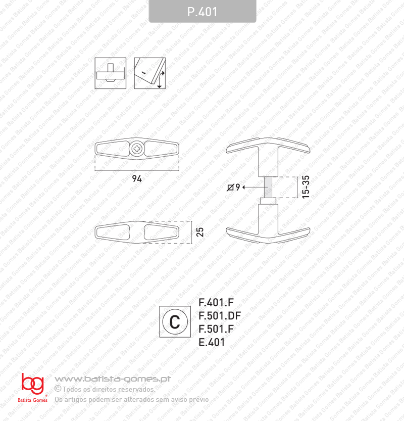 Compativel com fechaduras: F.401.F. F.501.F, F.501.DF
