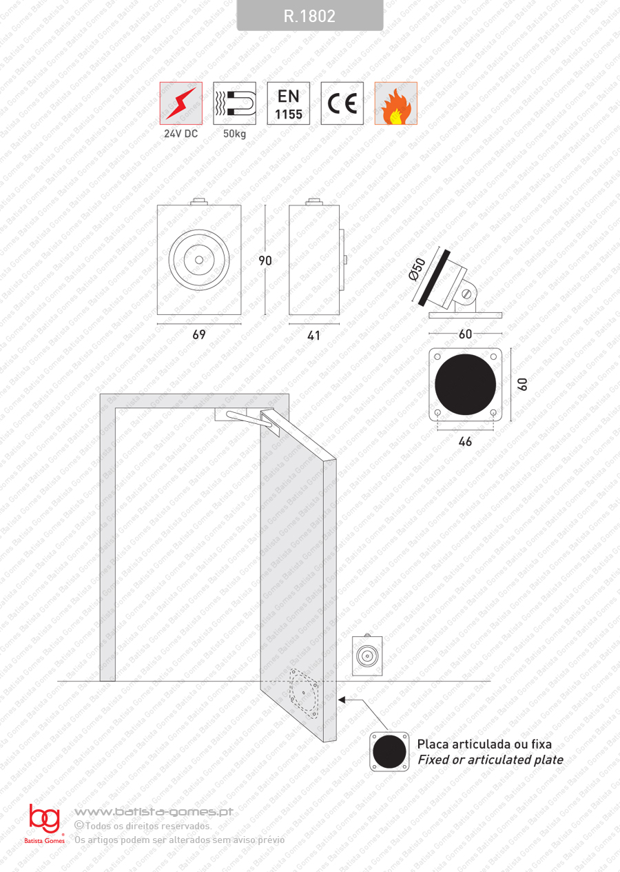 R.1802 RETENTOR ELECTROMAGNÉTICO PARA PORTAS CORTA-FOGO