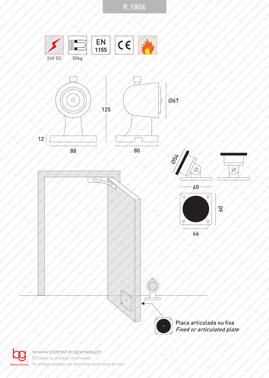 R.1806 RETENTOR ELECTROMAGNÉTICO PARA PORTAS CORTA-FOGO
