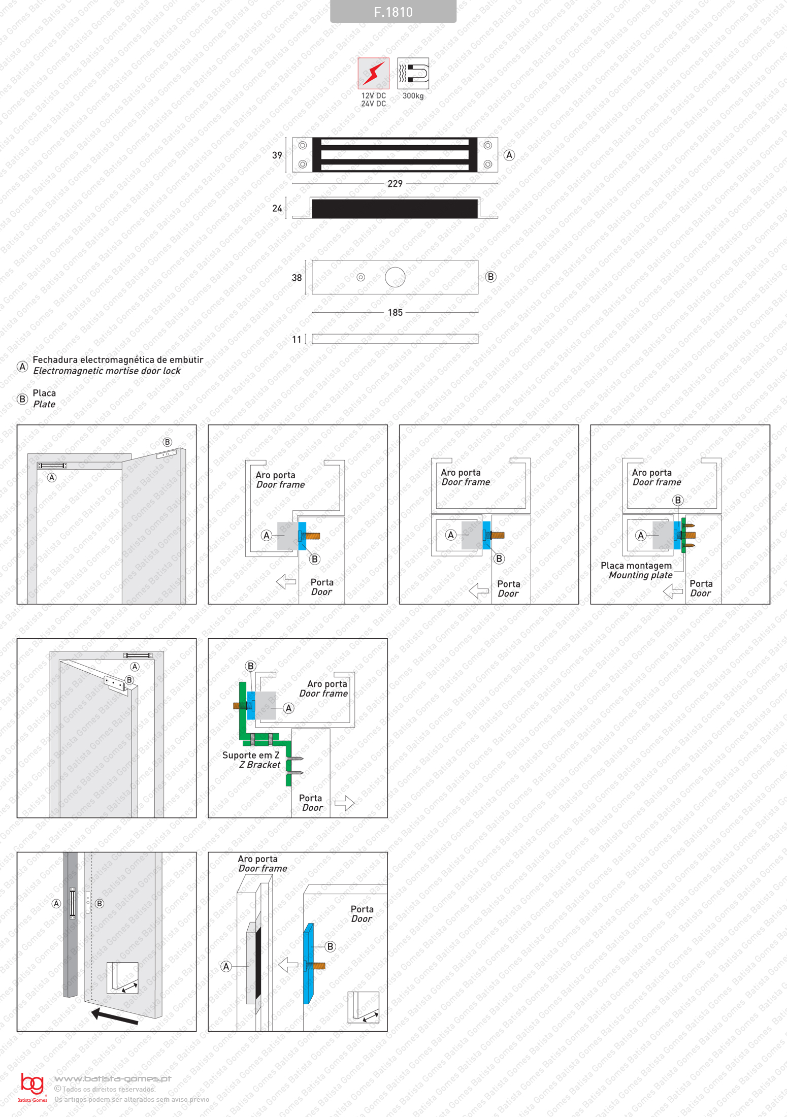 F.1810 FECHADURA ELECTROMAGNÉTICA DE EMBUTIRResistência: 300kg Alimentação: 12V DC / Consumo: 500mA Alimentação: 24V DC / Consumo: 250mA Peso: 1,95kg • Sensor / detector presença e posição da porta ( aberta / fechada )