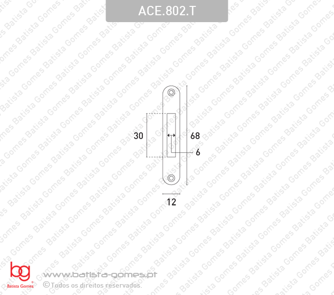 ACE.802.TChapa testa para fechadura de mobiliárioDIM: 68x12mmCompatível com diversas fechaduras (Ver dimensões)Mais informação consultar desenho técnico