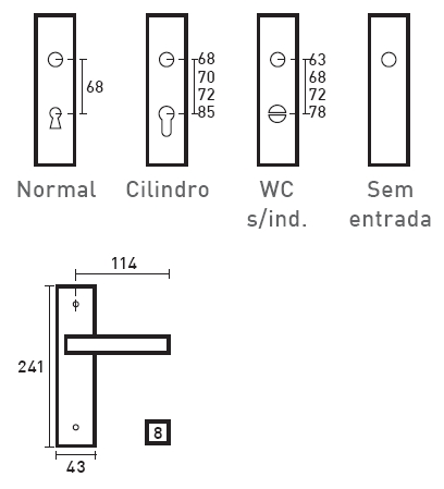 - Fixação na placa por parafusos + carrapeta a atravessar a porta