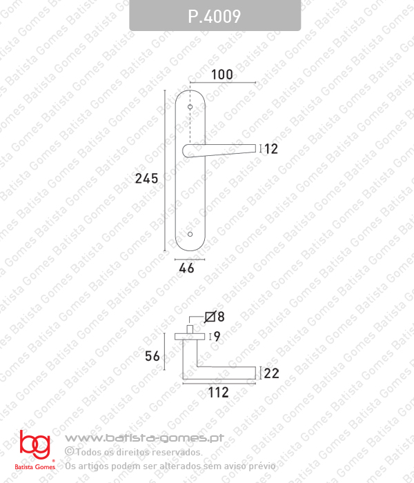 P.4009 - Par Puxador - Fornecimento standard com entrada chave normal - Com mola de recuperação - Muleta fixa à placa - Fixação nas placas por parafusos + carrapetas a atravessar a porta