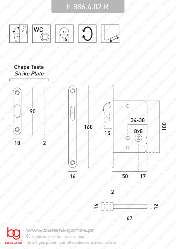 • Fechadura de embutir com gancho recolhível • Indicada para portas de correr (ou de abrir) • Conjuga com Kits conchas com botão e Fechos WC • Gancho accionado na quadra • Caixa em aço galvanizado • Testa e chapa testa nos acabamentos abaixo indicados Para mais informações consultar desenho técnico