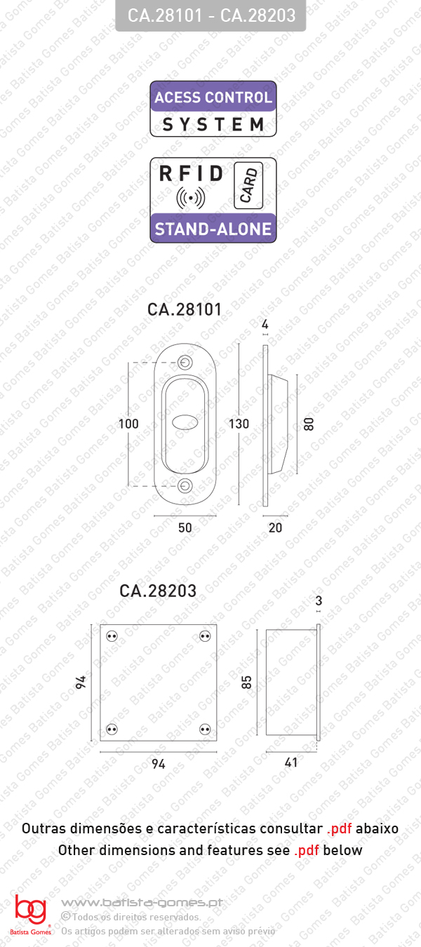 CA.28101 / CA.28203 Sistema controlo acessos autoprogramável de parede com cartão proximidade (RFID)