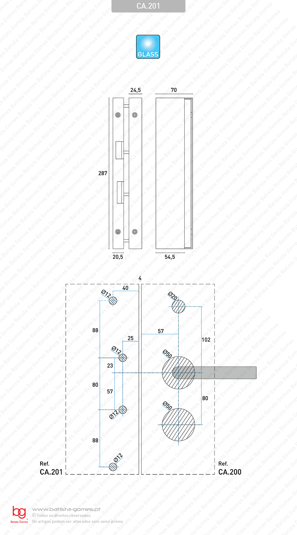 CA.201Caixa (testa) para vidro• Caixa (testa) para 2ª folha vidro (Dto ou Esq)• Conjuga com fechadura com controlo de acessos CA.200.BDimensões: Consultar desenho técnico