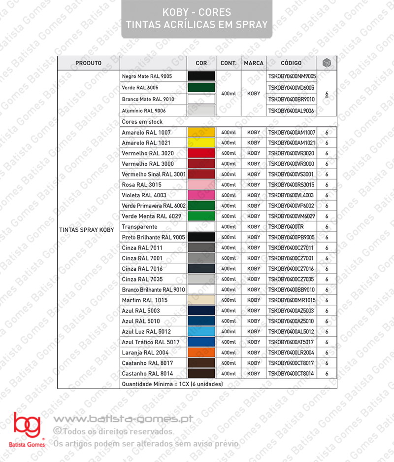 Batista Gomes - TINTAS ACRÍLICAS EM SPRAY - Esmalte acrílico de elevada qualidade para uso em interior e exterior