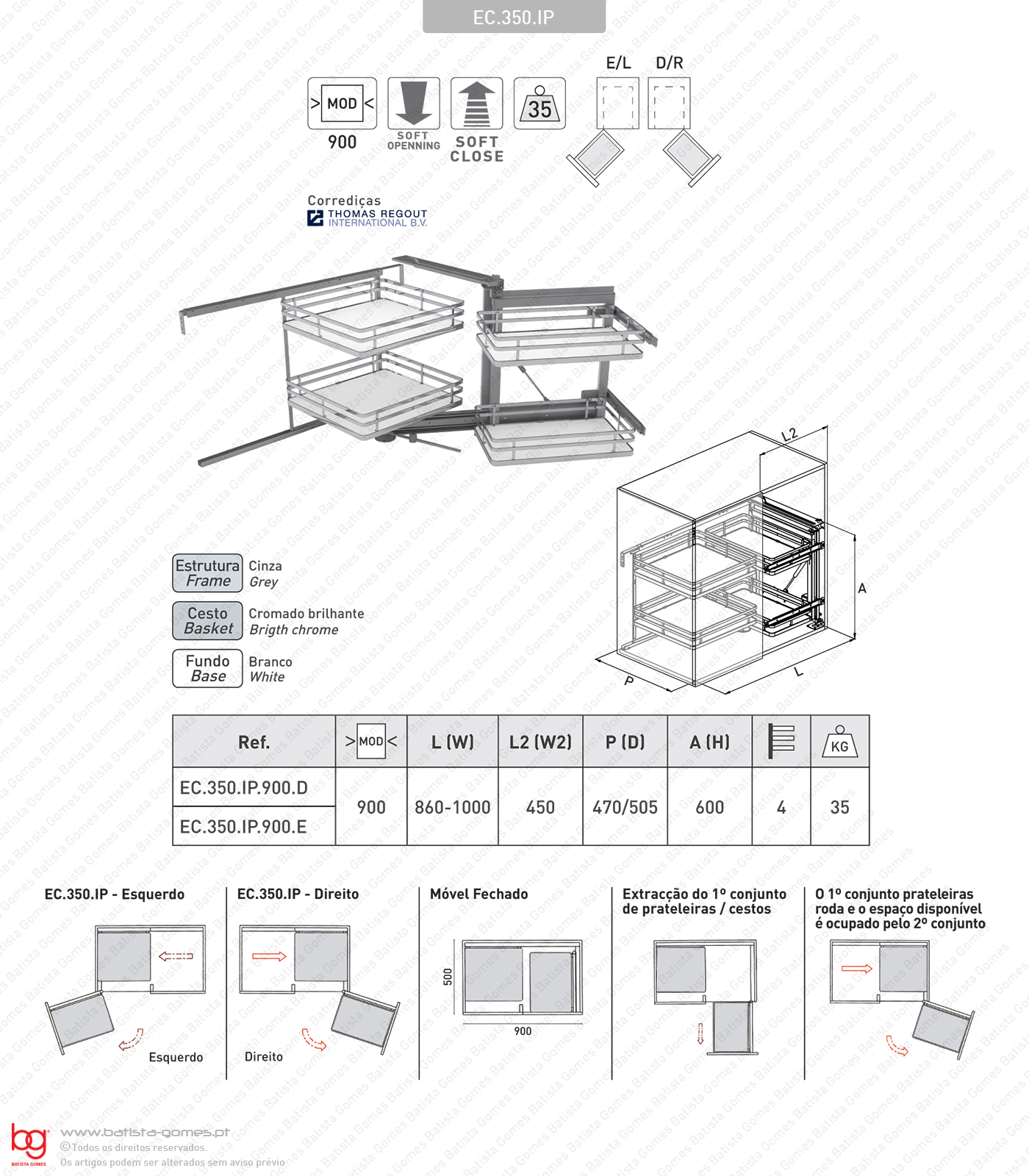 Despenseiro multiusos com 5 cestos para aplicação porta lateral - Extração total com Soft-close - Mód. 450 / 500 - Cromado |