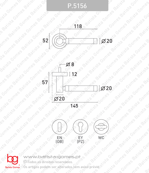 P.5156 • Par puxador • Entradas de chave normal incluídas • Com molas de recuperação • Muleta fixa à roseta • Fixação oculta por parafusos+carrapeta a atravessar a porta