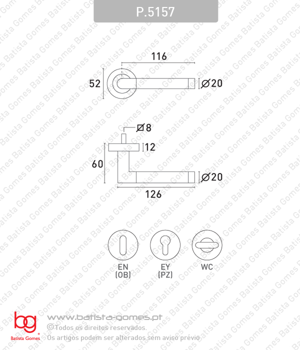 P.5157 • Par puxador • Entradas de chave normal incluídas • Com molas de recuperação • Muleta fixa à roseta • Fixação oculta por parafusos+carrapeta a atravessar a porta Combinações de acabamentos O indicado em 1º lugar refere-se ao acabamento predominante na muleta do puxador. Para mais informações consultar desenho técnico.